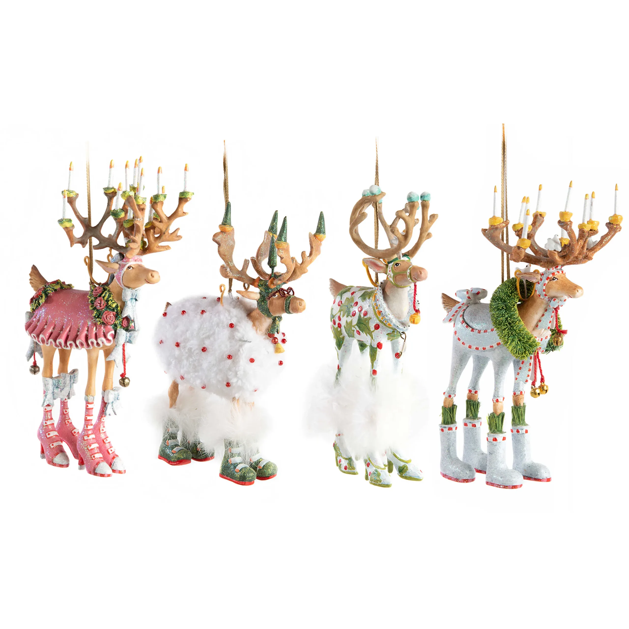 MacKenzie-Childs Holiday<Patience Brewster Dash Away Reindeer Ornament Set