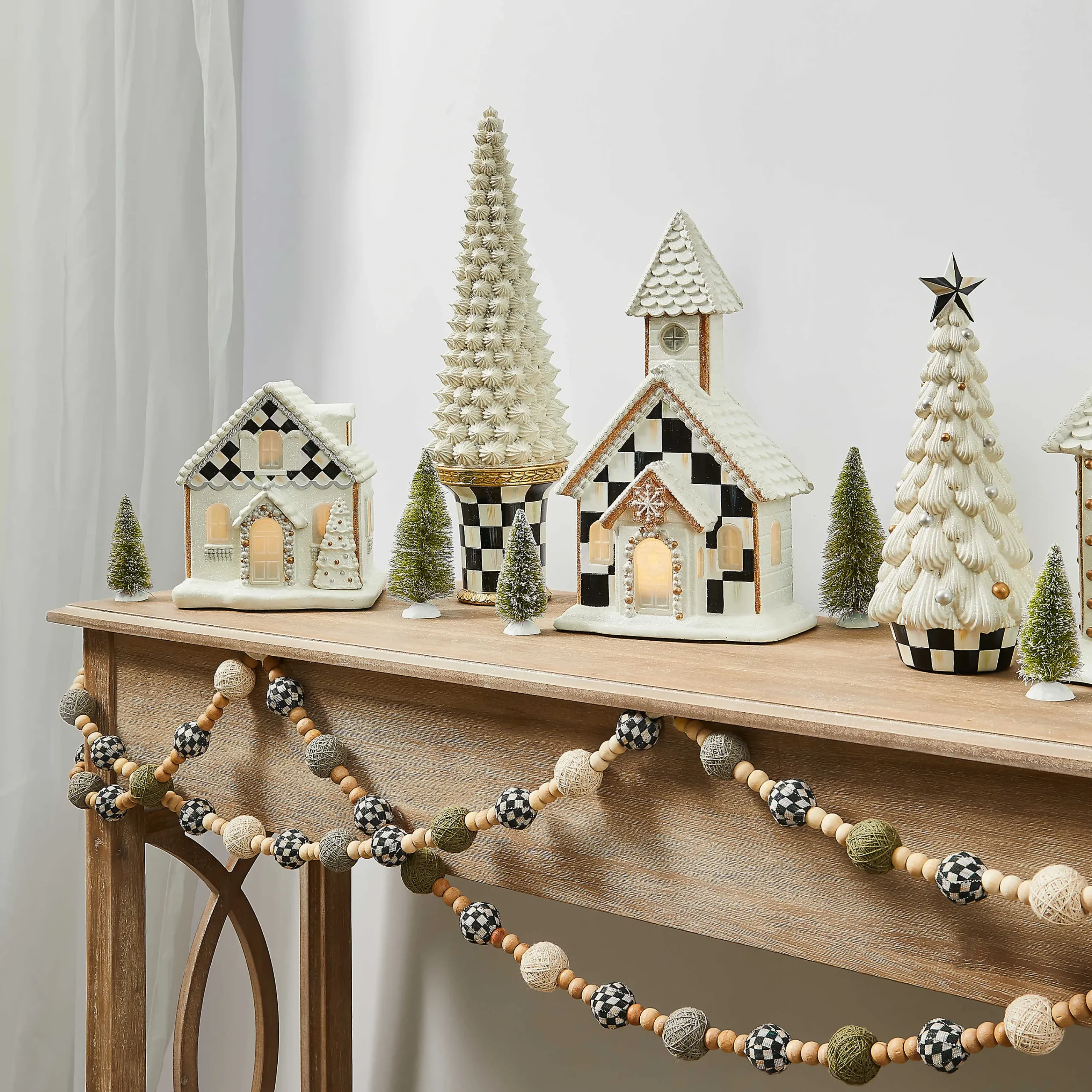 Holiday decorating is sweeter with this large tree figure decorated with faux icing and nonpareils and sitting on a Courtly Check® pedestal stand.