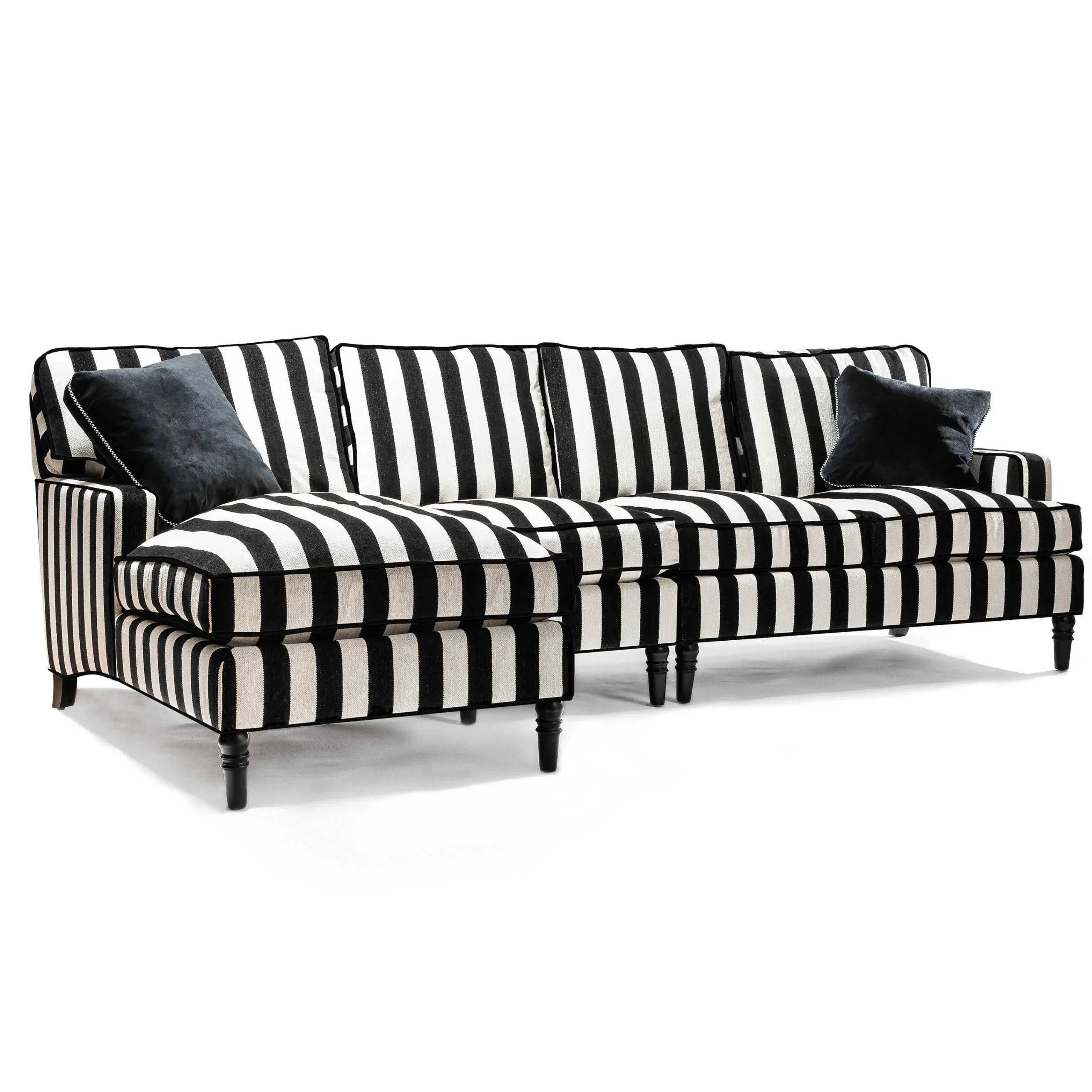 MacKenzie-Childs Living Room<Marquee Black Stripe 2-Piece Right Arm Chaise Sectional