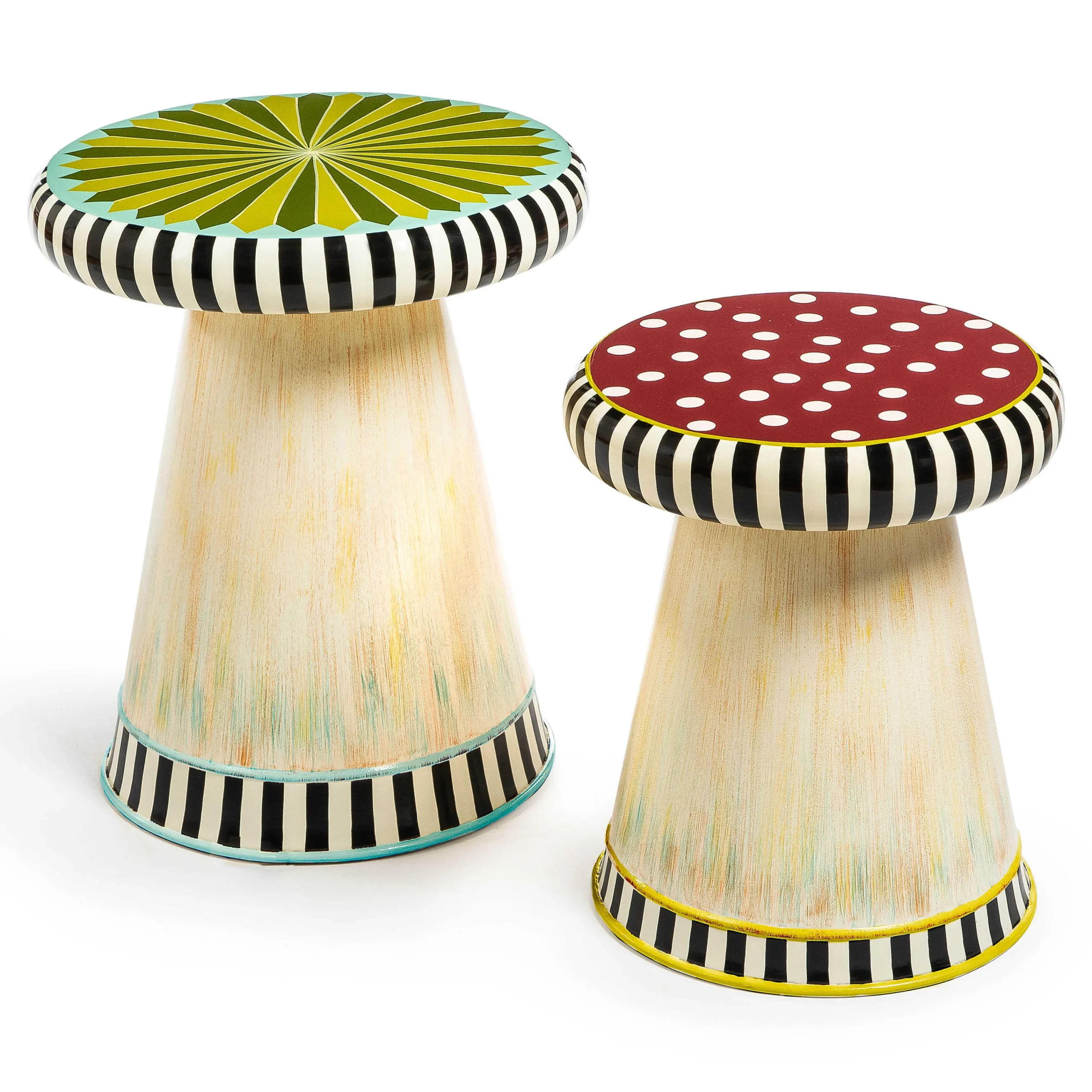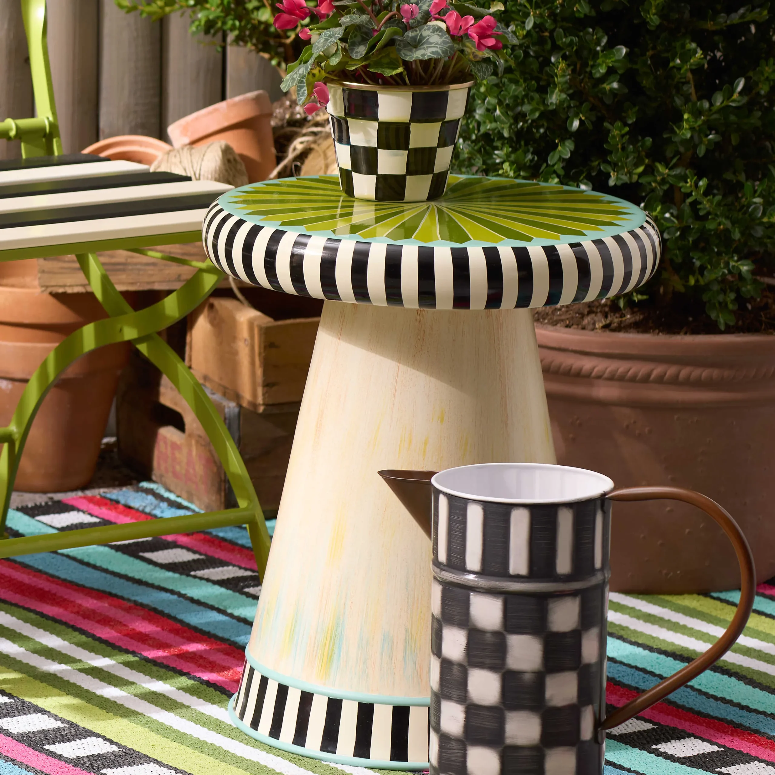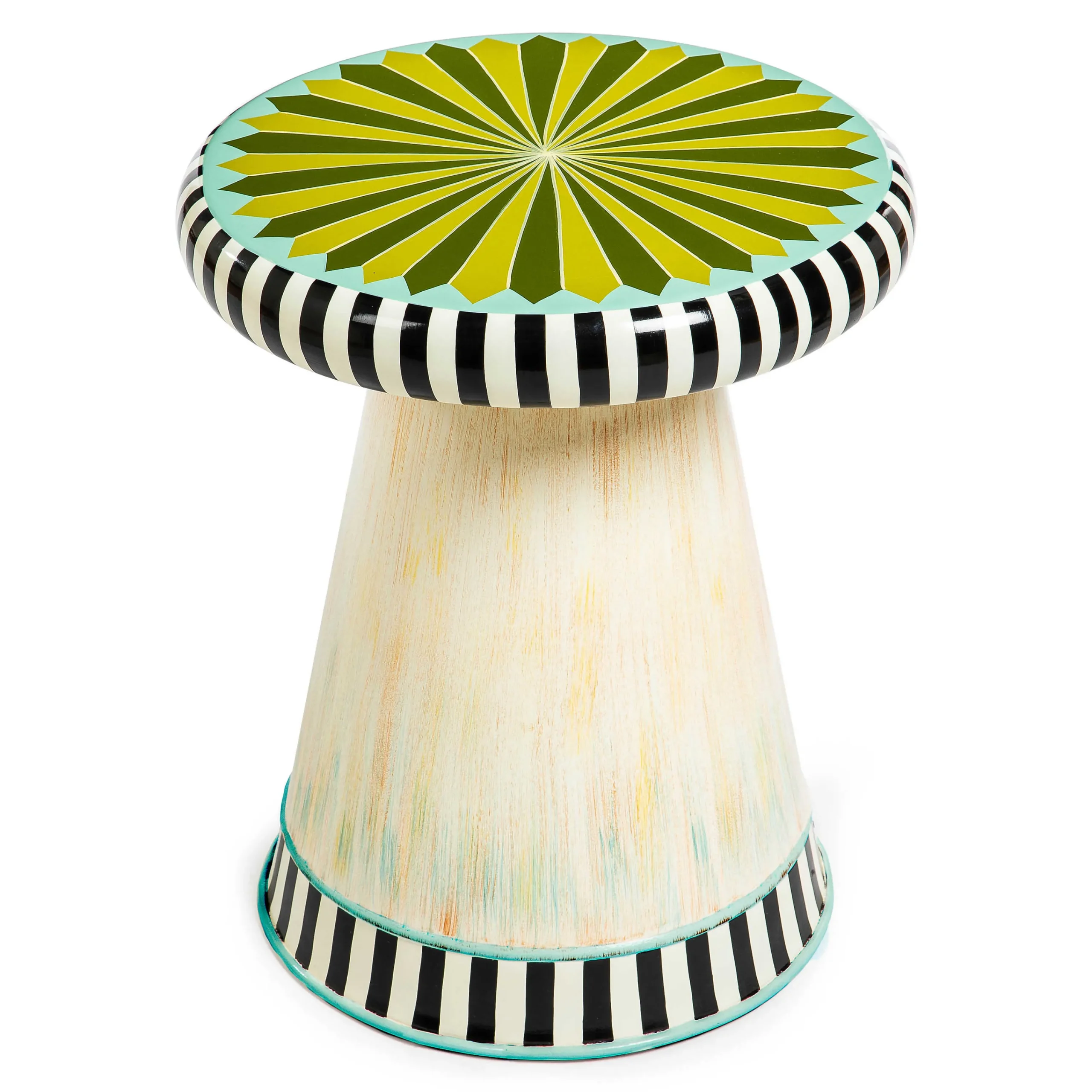 Make room for this large iron outdoor toadstool that’s hand-painted with a fresh-and-fun green sunburst pattern. It’s perfect as a side table or additional seating.