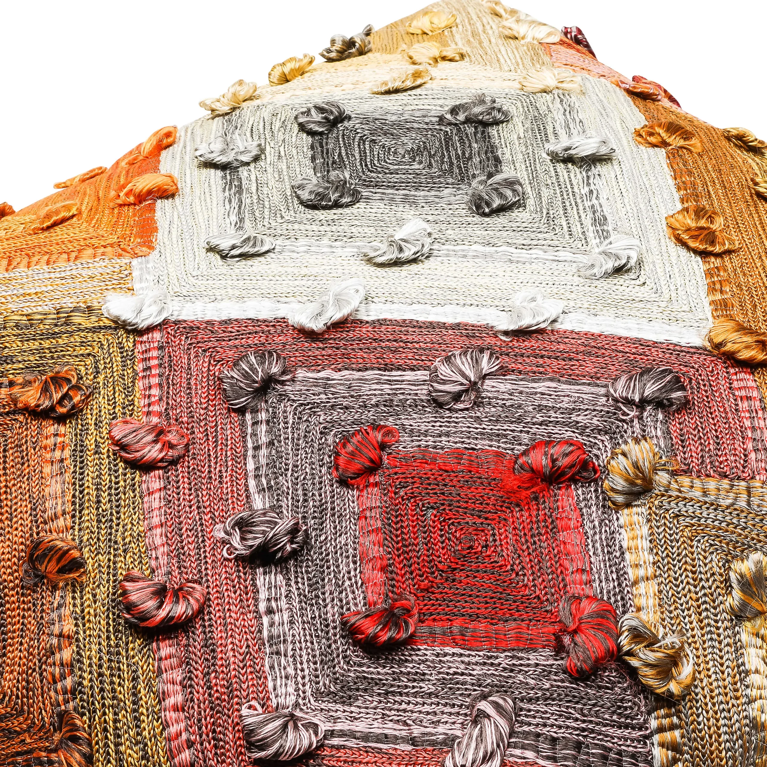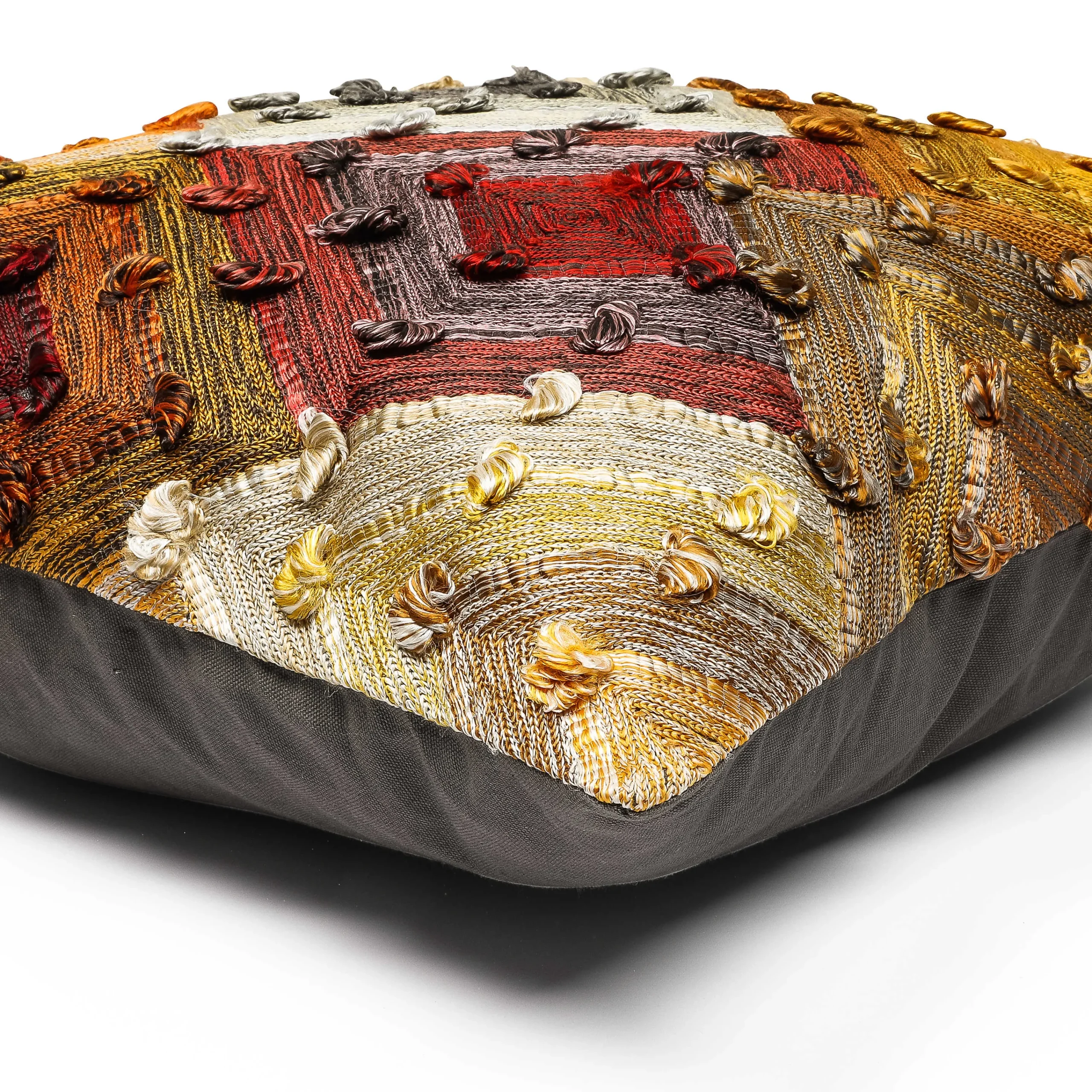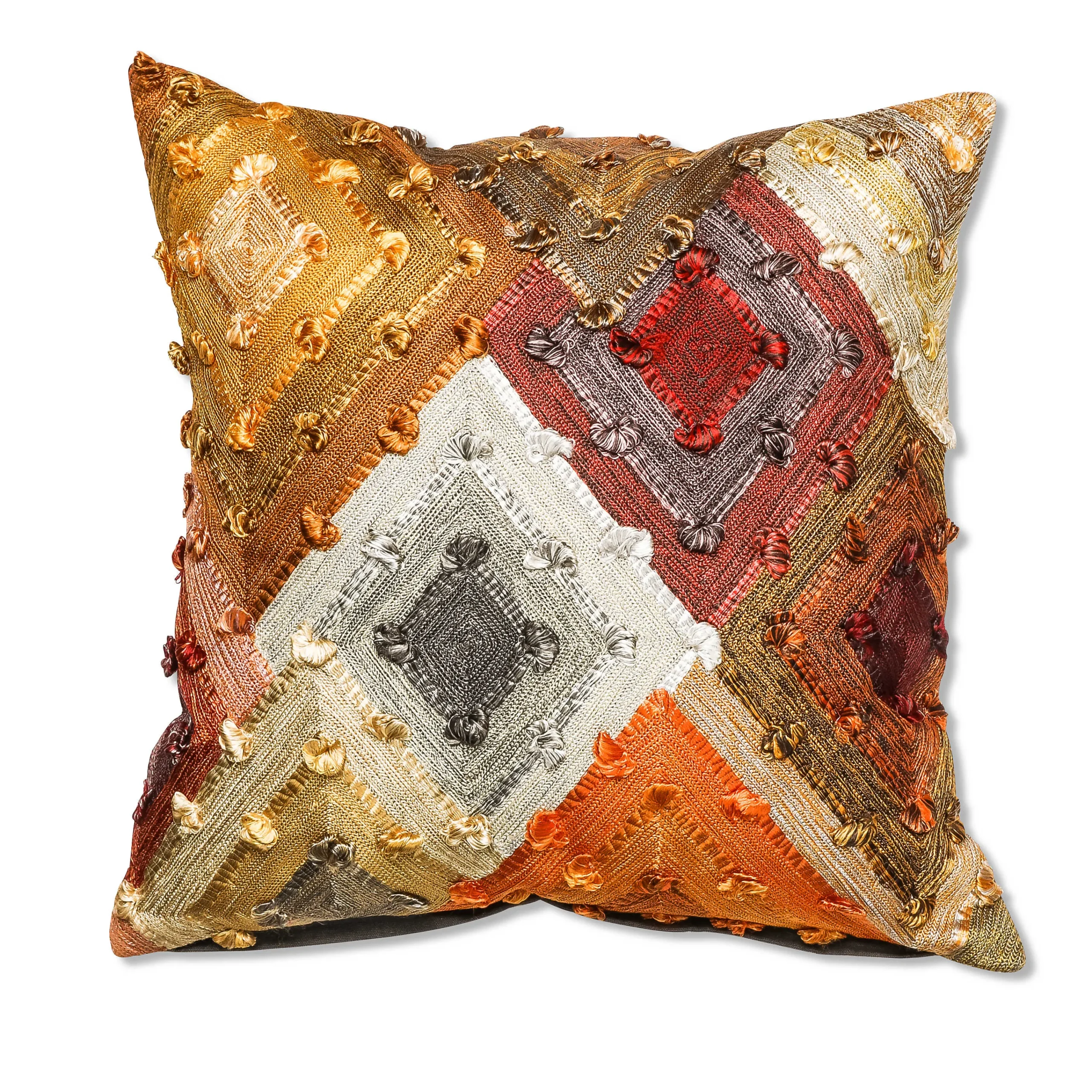 Add a touch of texture with this pillow, detailed with a machine-embroidered diamond pattern that’s accented with looped thread knots.