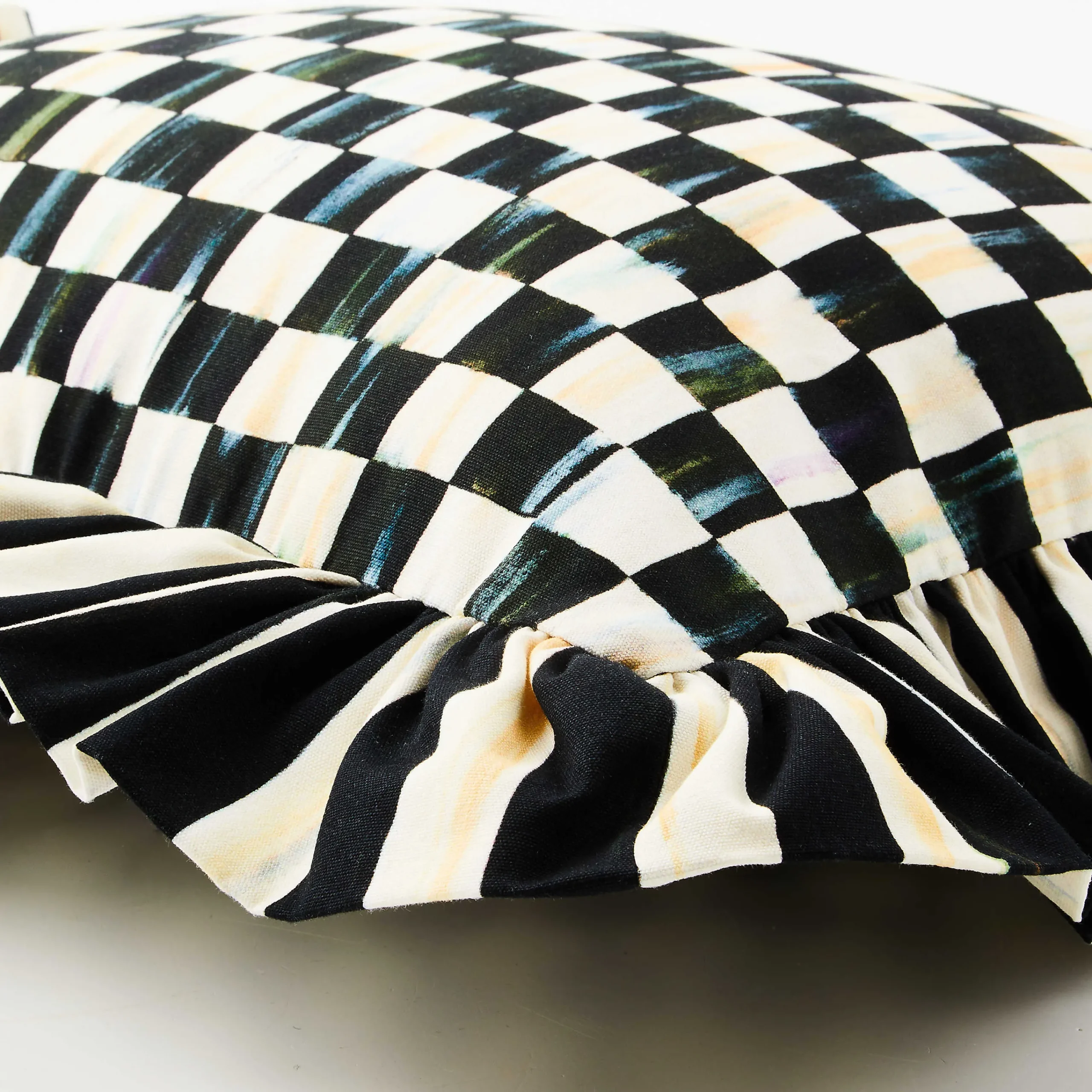 Add classic MacKenzie-Childs style with our Courtly Check® Ruffle Lumbar Pillow. It features Courtly Check on the front and back with a Courtly Stripe ruffle around the edges.