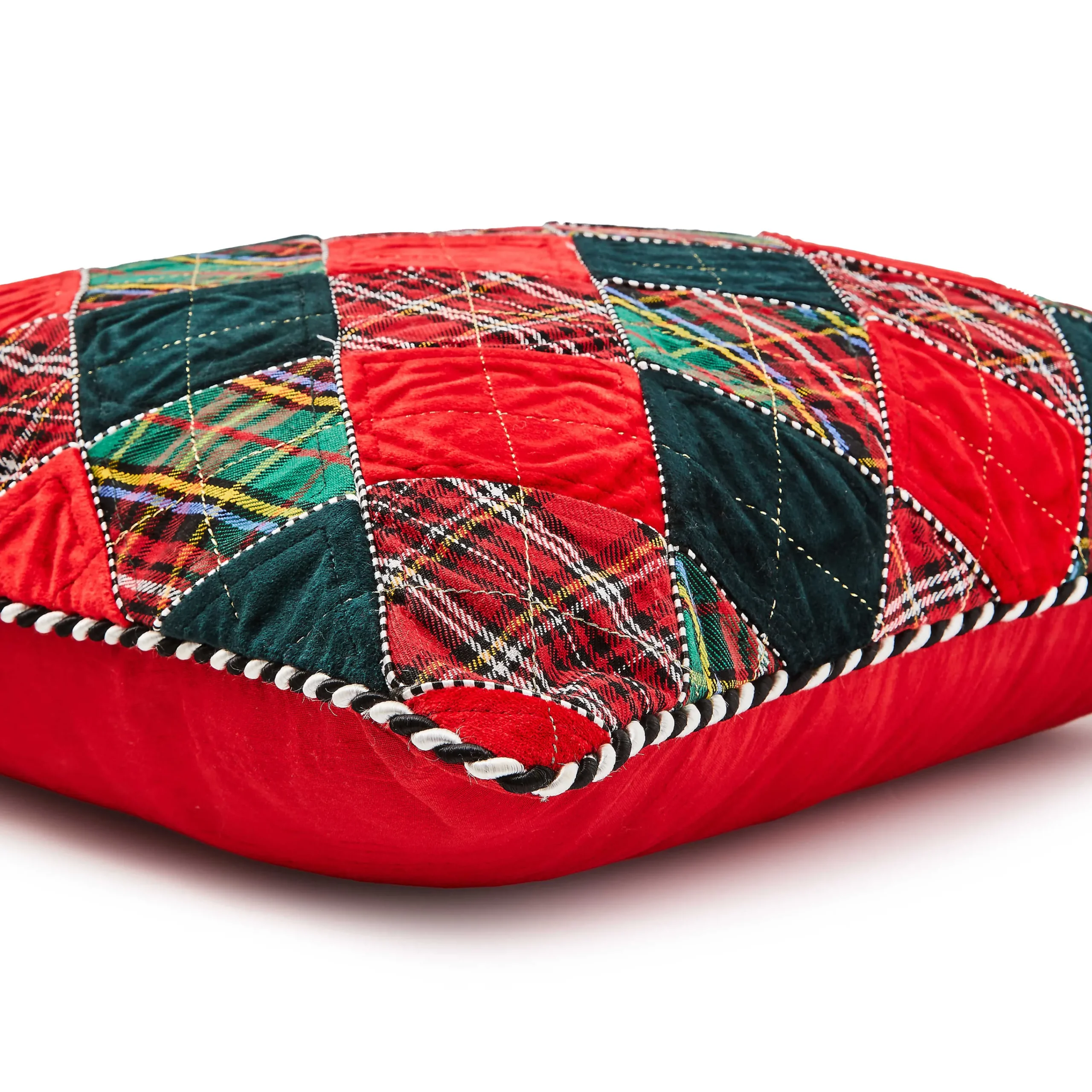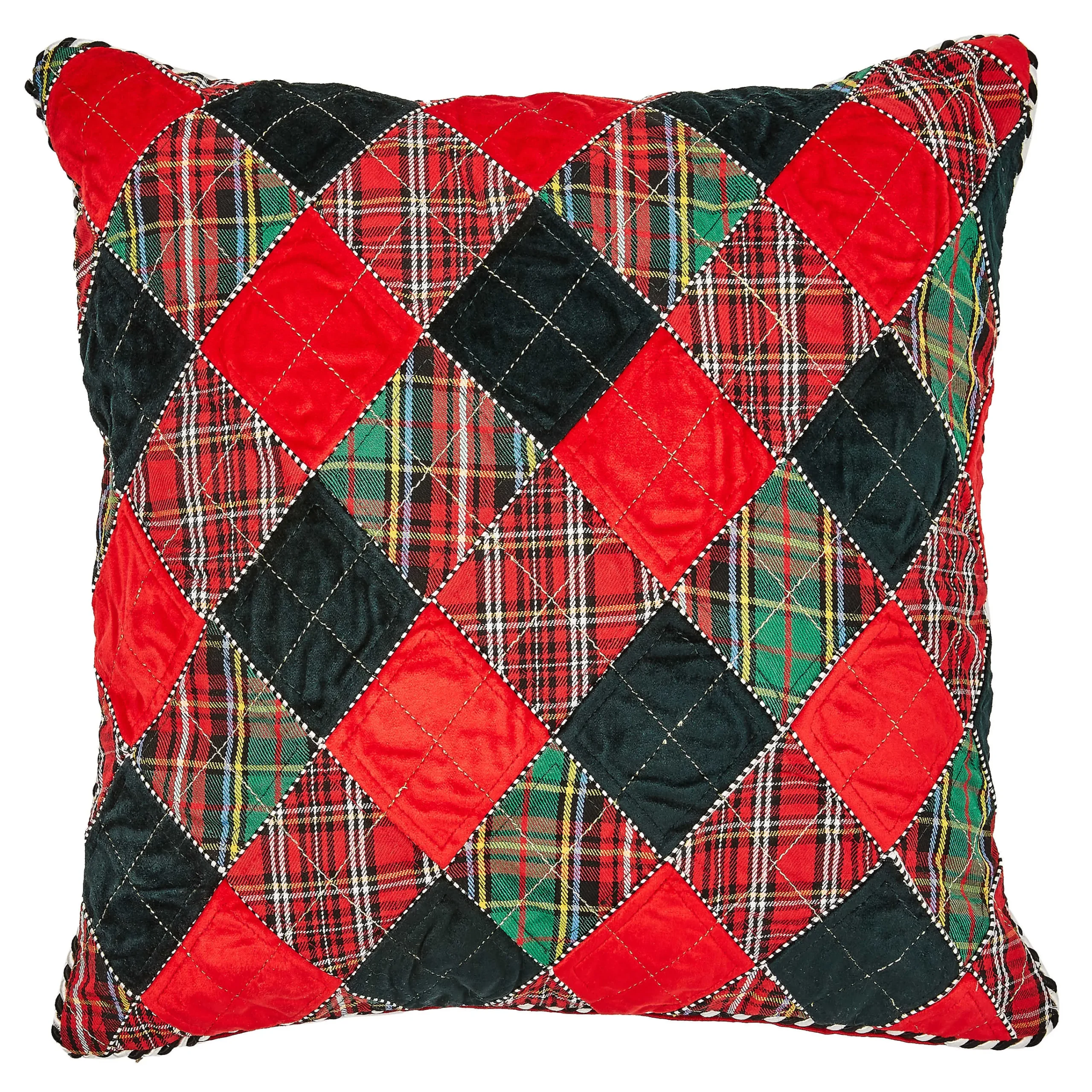 Add comfort and joy to your holiday home with this throw pillow, featuring a tartan diamond pattern that’s embellished with lurex stitching. It’s finished with black and white twisted cording.