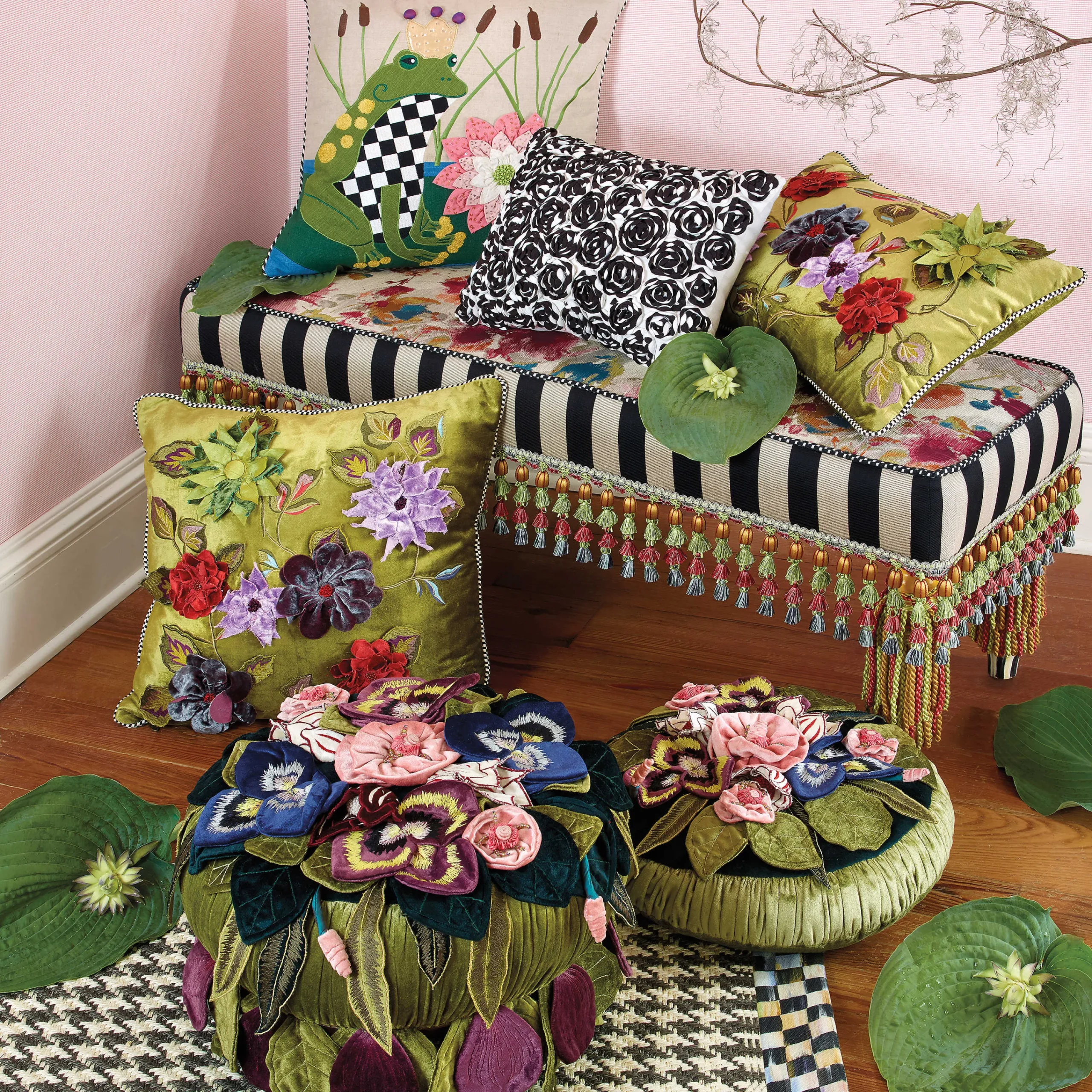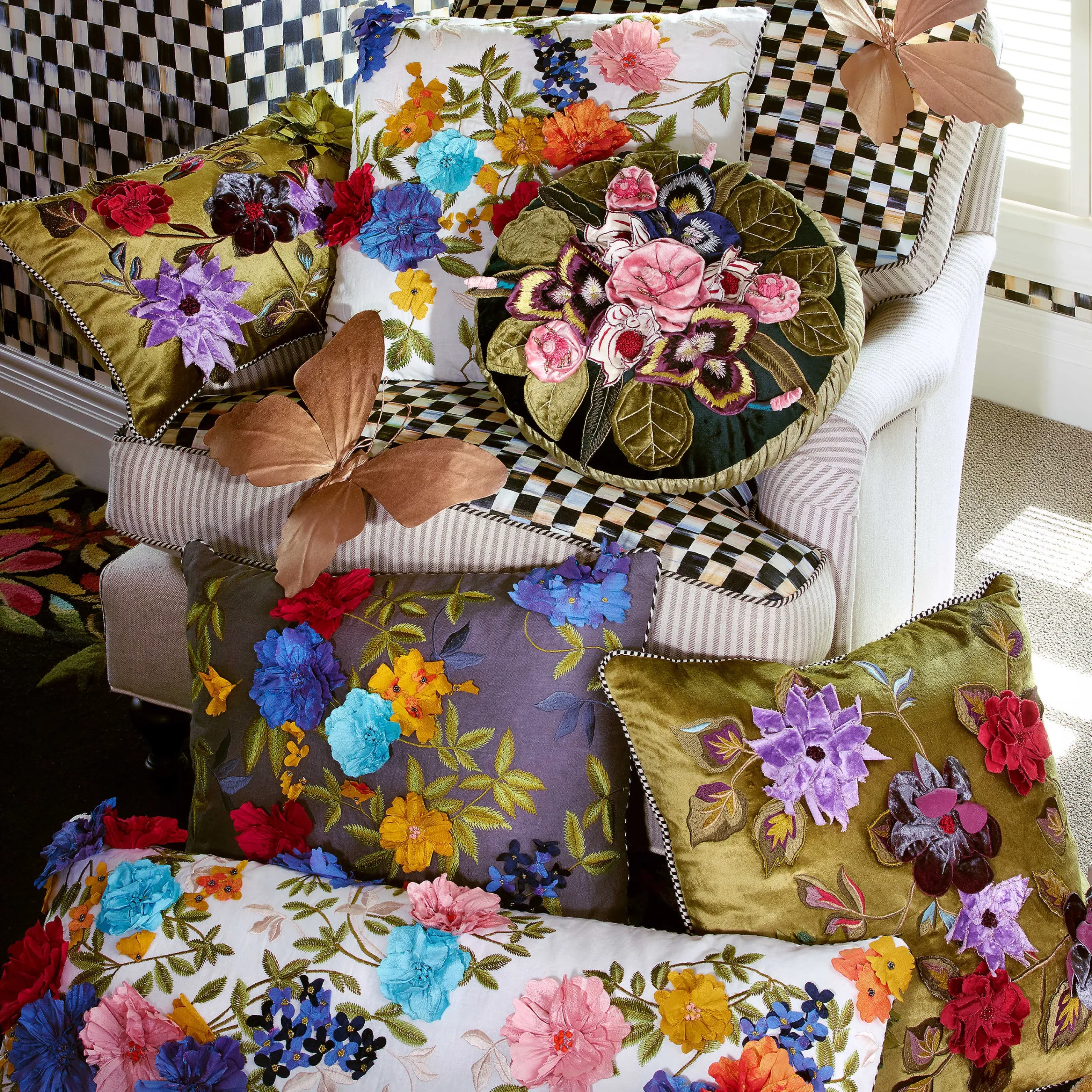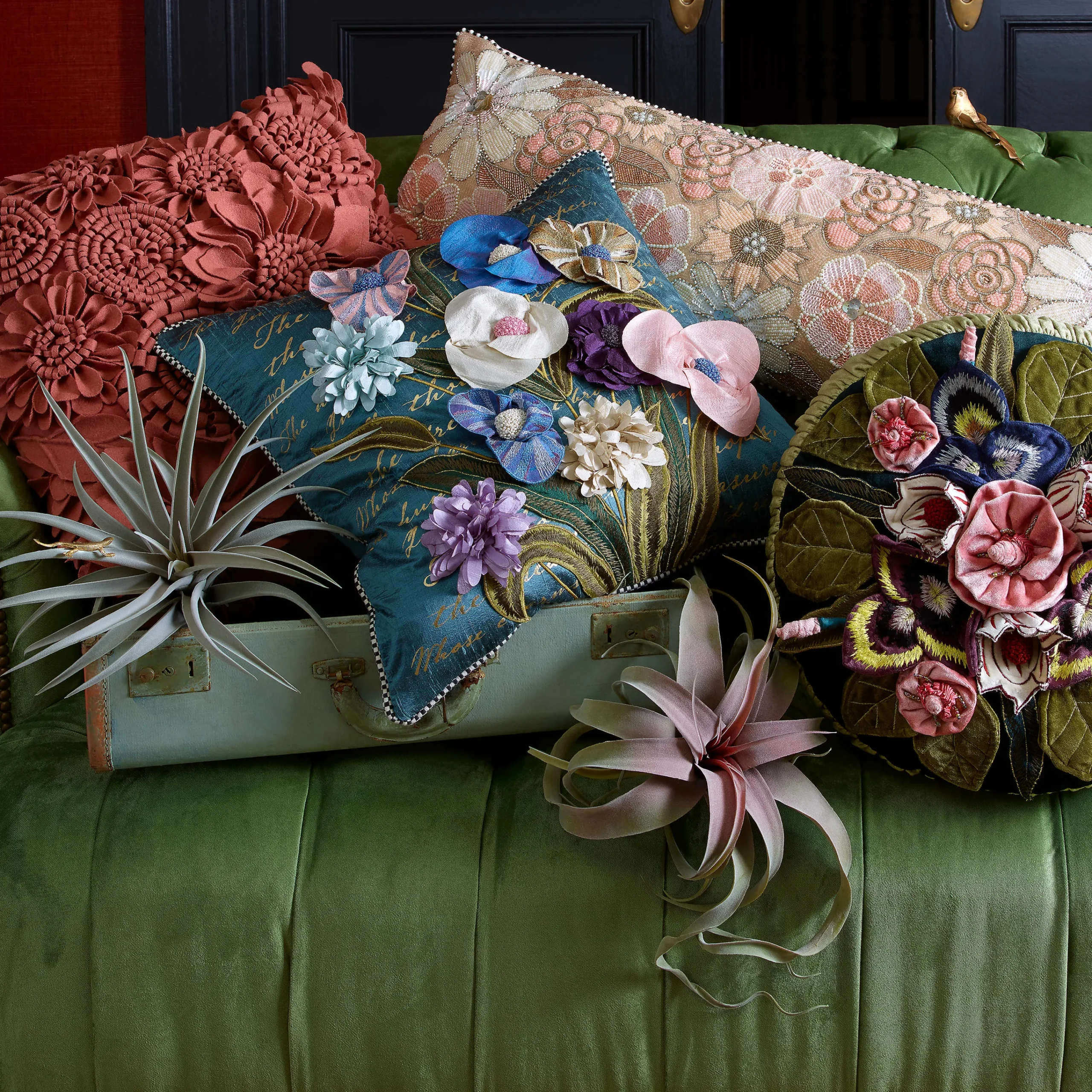 If there was ever a pillow with panache, it’s our Moonlight Garden Pillow. A layered symphony of sculpted and embroidered flowers and leaves on a base of luxurious velvet, it’s the perfect accent for our dark and dramatic Moonlight Garden furniture collection.