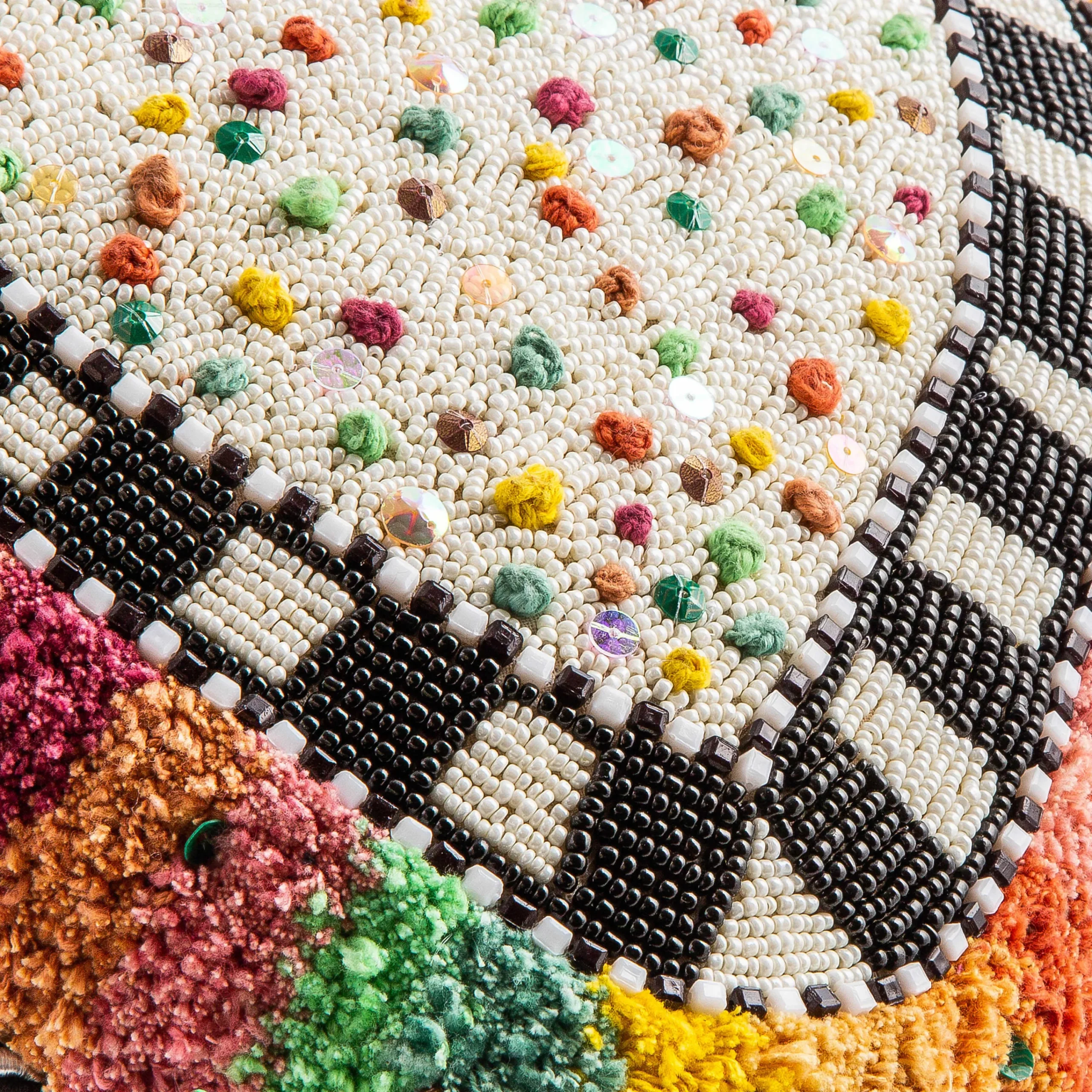 Inspired by our Rainbow Fluted Heart Plate, this pillow brings pride and joy into your home, featuring a beaded heart in the center, outlined in chenille rainbow stripes, and trimmed with black and white twisted cording.