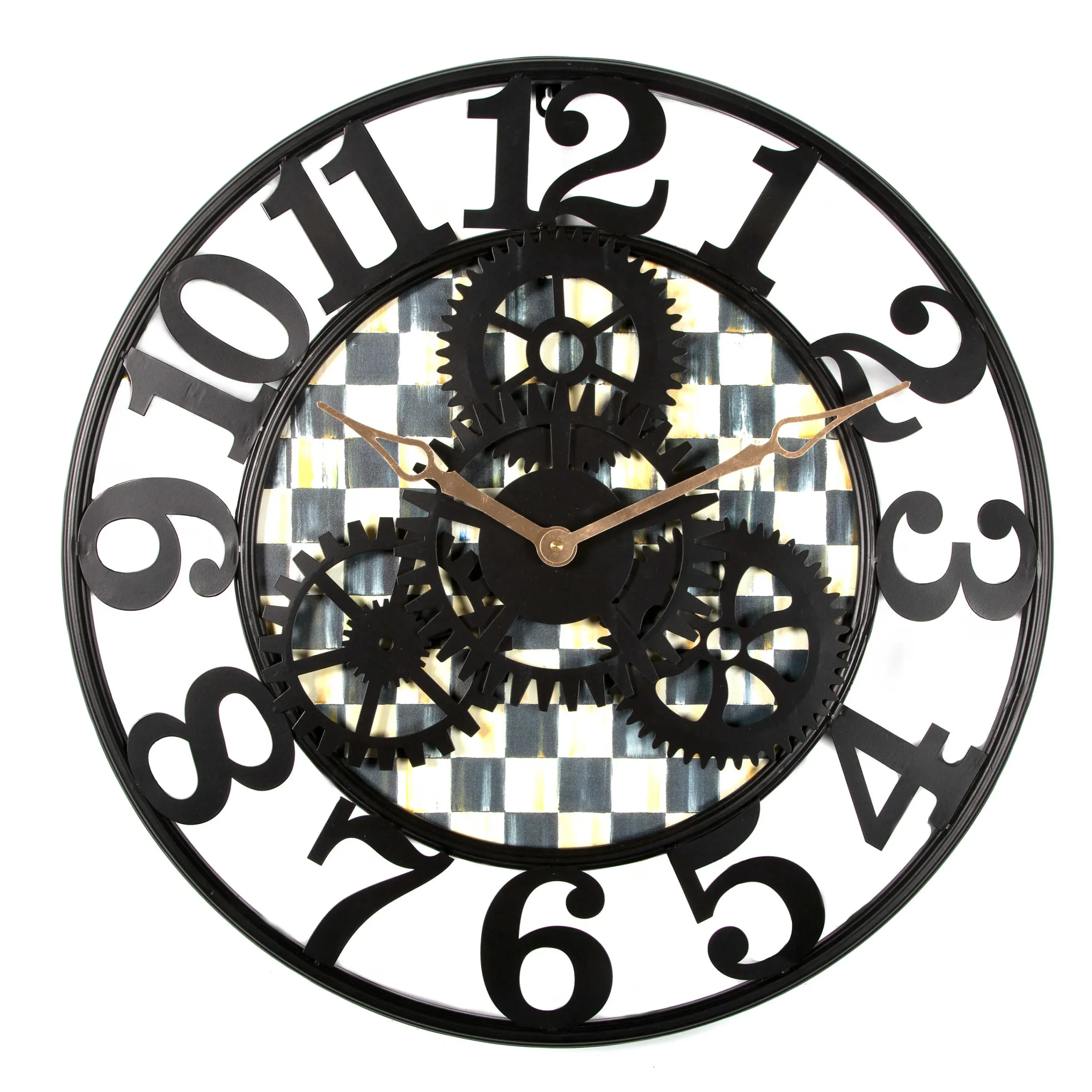 Sync your schedule to MacKenzie-Childs time. Our Small Courtly Check® Farmhouse Wall Clock is the perfect timekeeper in any room, from the kitchen to the board room. Featuring our Courtly Checks and exposed clock gears in the center, encircled by iron numbers, it makes watching the clock a charming activity.