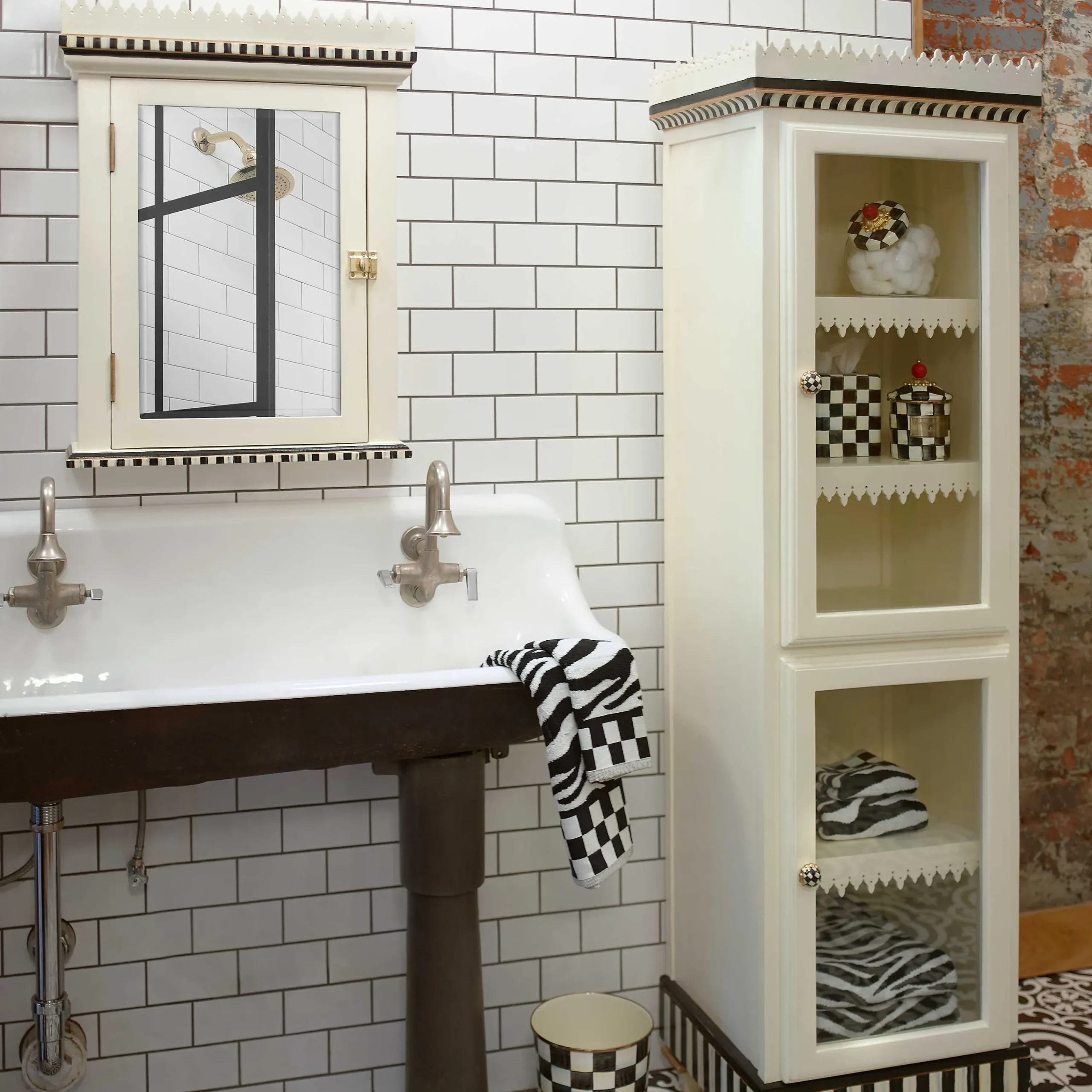 Add to the endless possibilities for our canisters with the Demi Courtly Check® Enamel Canister. A step up from our smallest sized canister, the Demi stands handsomely alone or harmonizes delightfully in a set. Keep it in the kitchen or invent new uses around the house. It’s perfect for cotton balls and swabs in the bathroom, pens and pencils in the office, or knickknacks and doodads in the kids’ room. Each enameled steel canister is hand-painted with black and white Courtly Checks® and topped with a faux cinnabar bead knob.