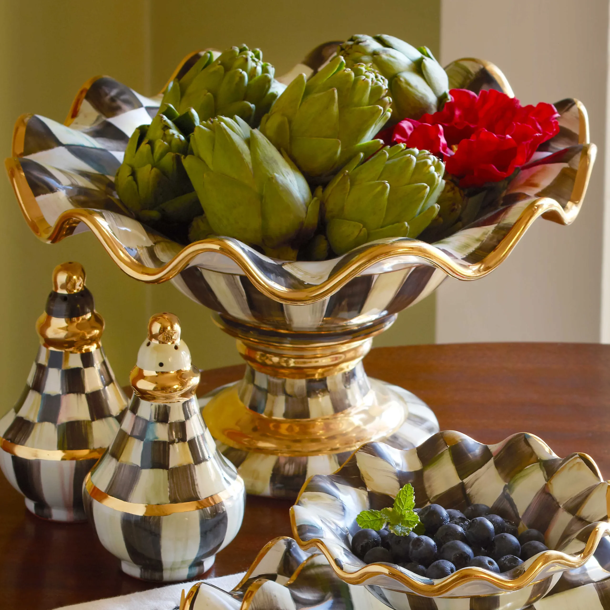 MacKenzie-Childs Serveware<Courtly Check Ceramic Compote