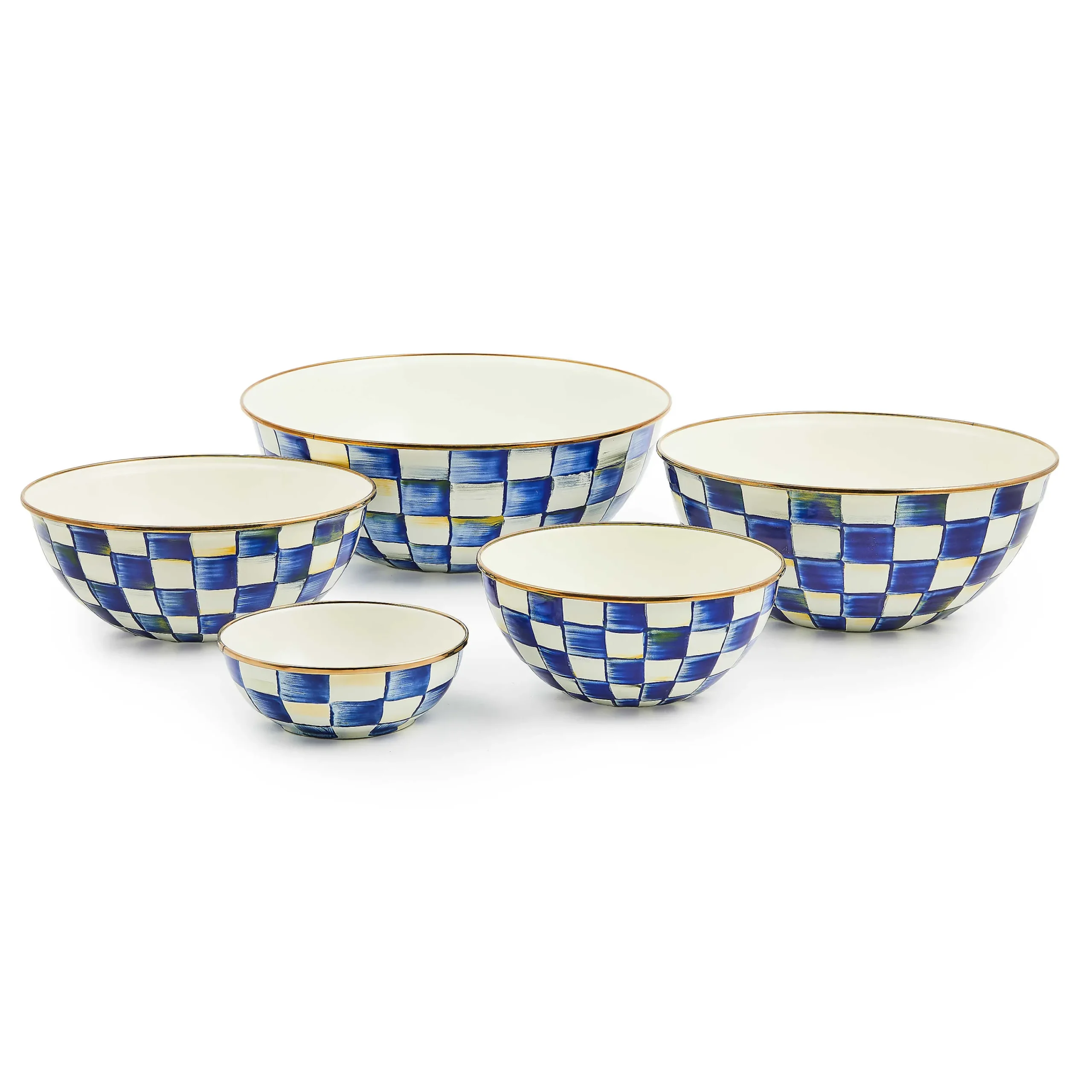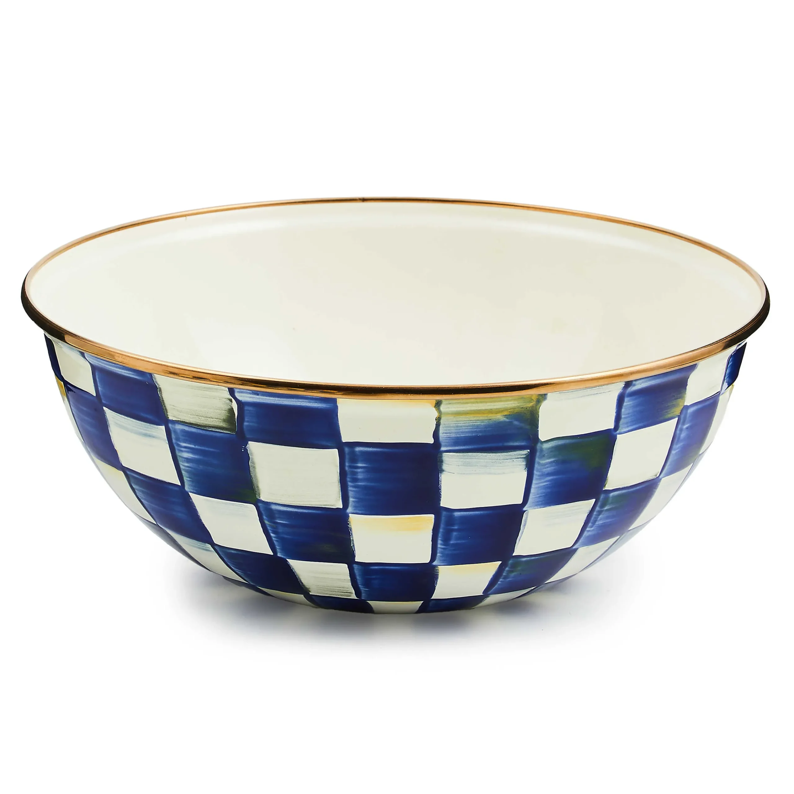Our Medium Royal Check Everyday Bowl is a durable bowl that’s a must-have in the kitchen. It’s decorated in our classic hand-painted Royal Check enamel, which features a range of blue hues over a versatile steel underbody.