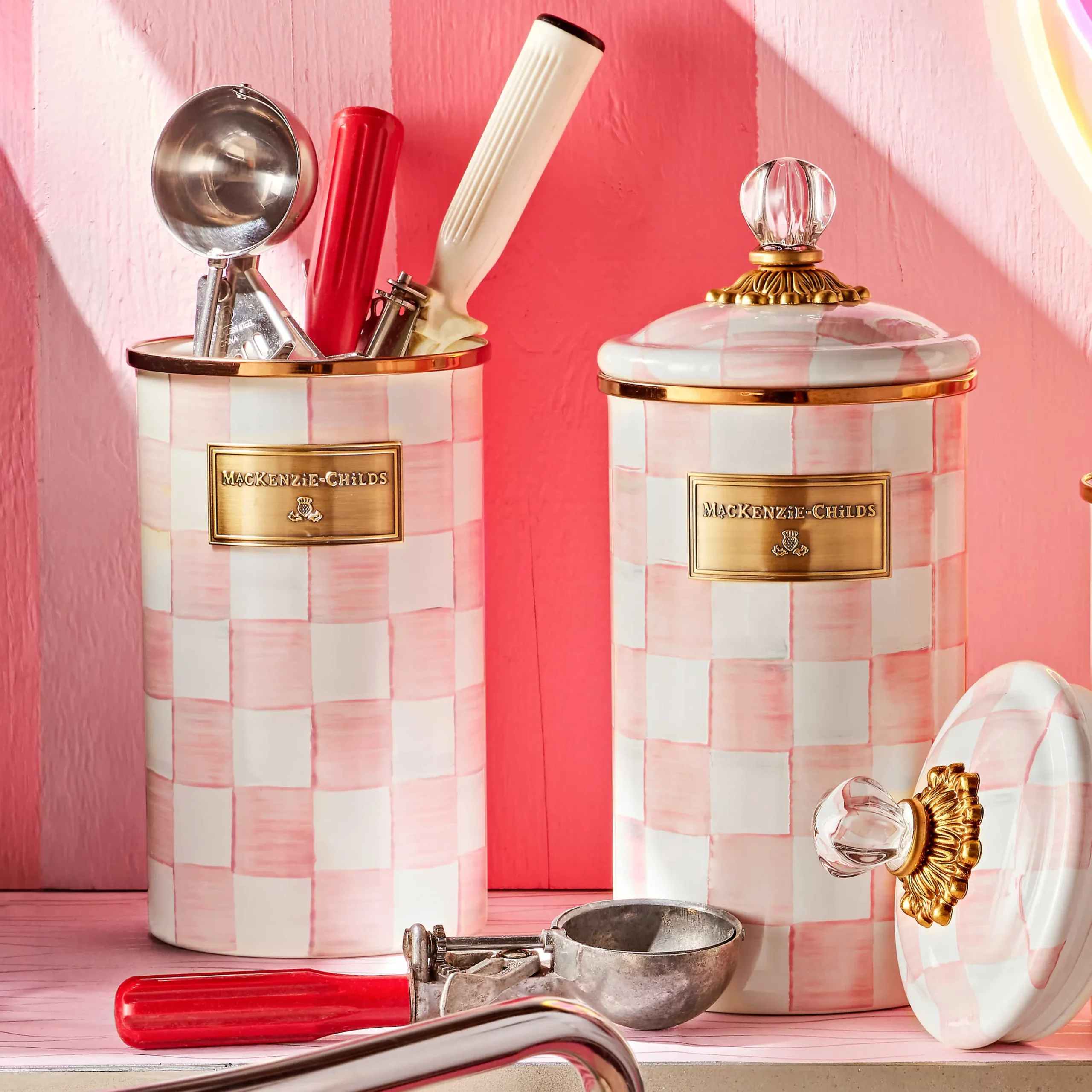 Our extra-tall Rosy Check Enamel Utensil Holder is the perfect container for everything from slotted spoons to crafting tools, and you’ll be hard-pressed to find a decor not complemented by the fresh, clean pattern. Look carefully to discover the palette of color-dragged checks in a range of rosy hues, and you just may be inspired to take up painting again—with this versatile vessel, you’ll already have a place to store your brushes.