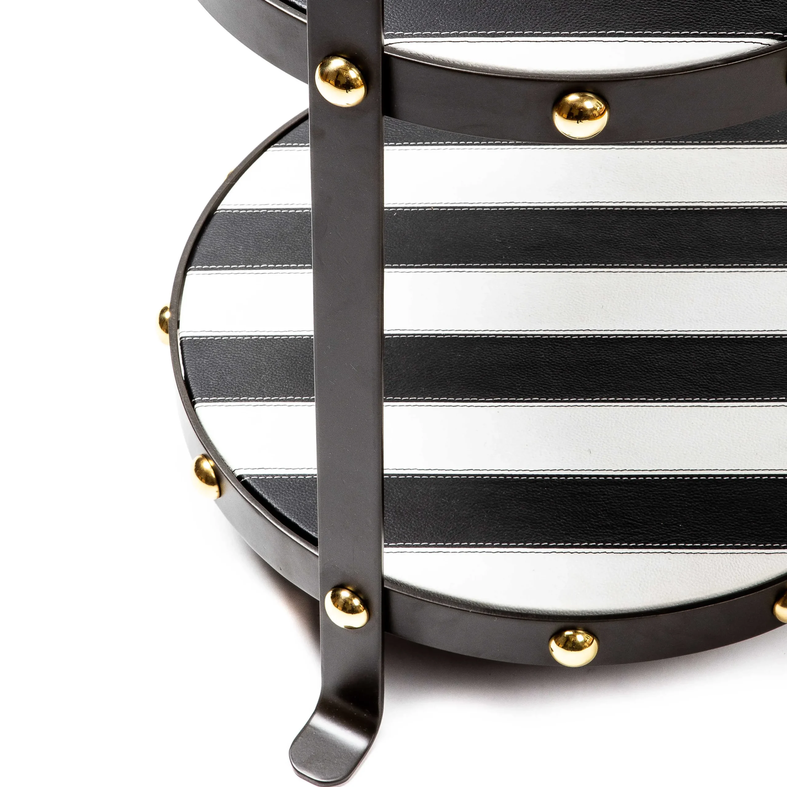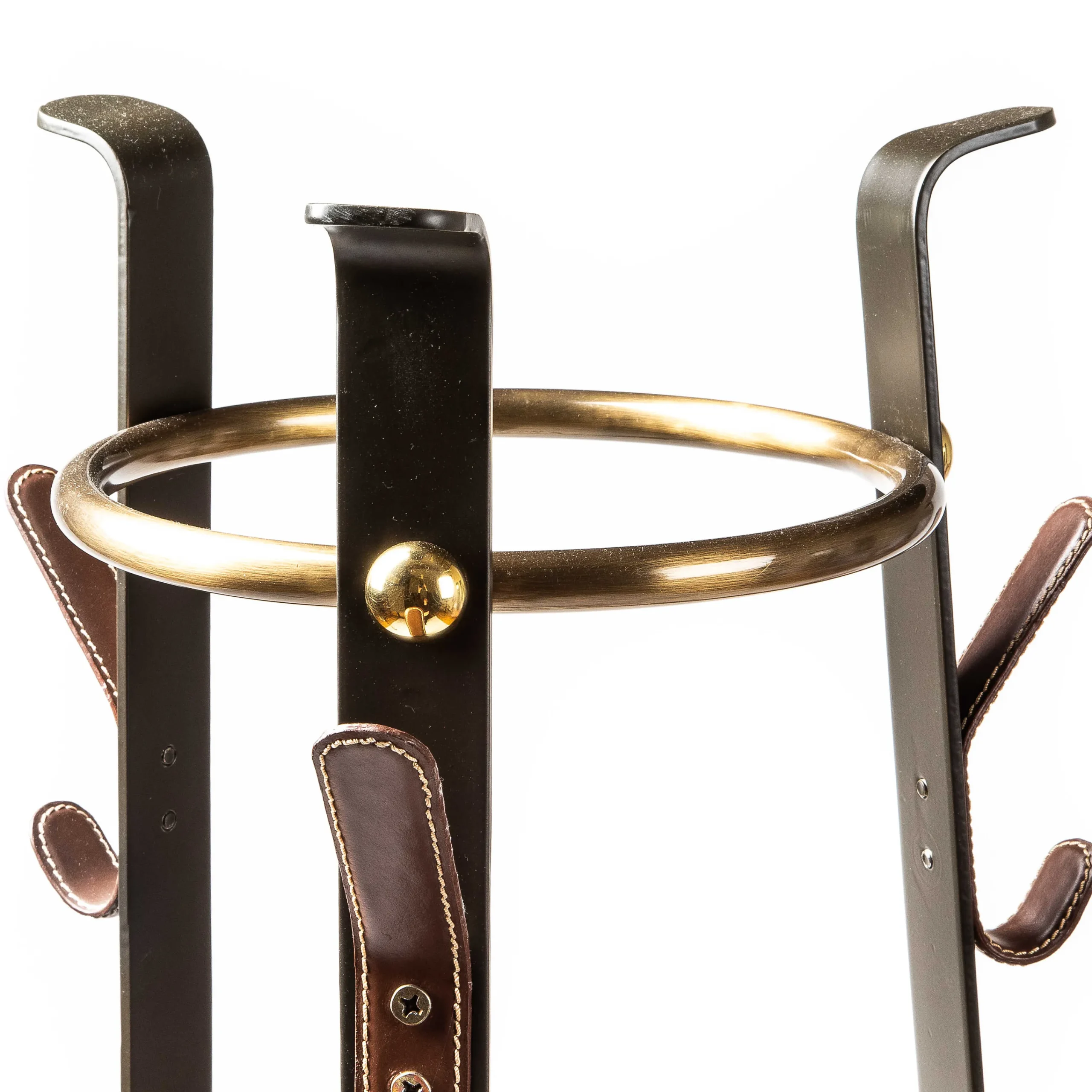 The Flatiron Coat Tree puts everything from caps to coats to keys in its place. Storage extends from top to bottom with six leather-bound double hooks and three graduated striped leather shelves, each trimmed with brass-finish half domes. Perfect for adding our signature style to the entry or the mudroom, too.